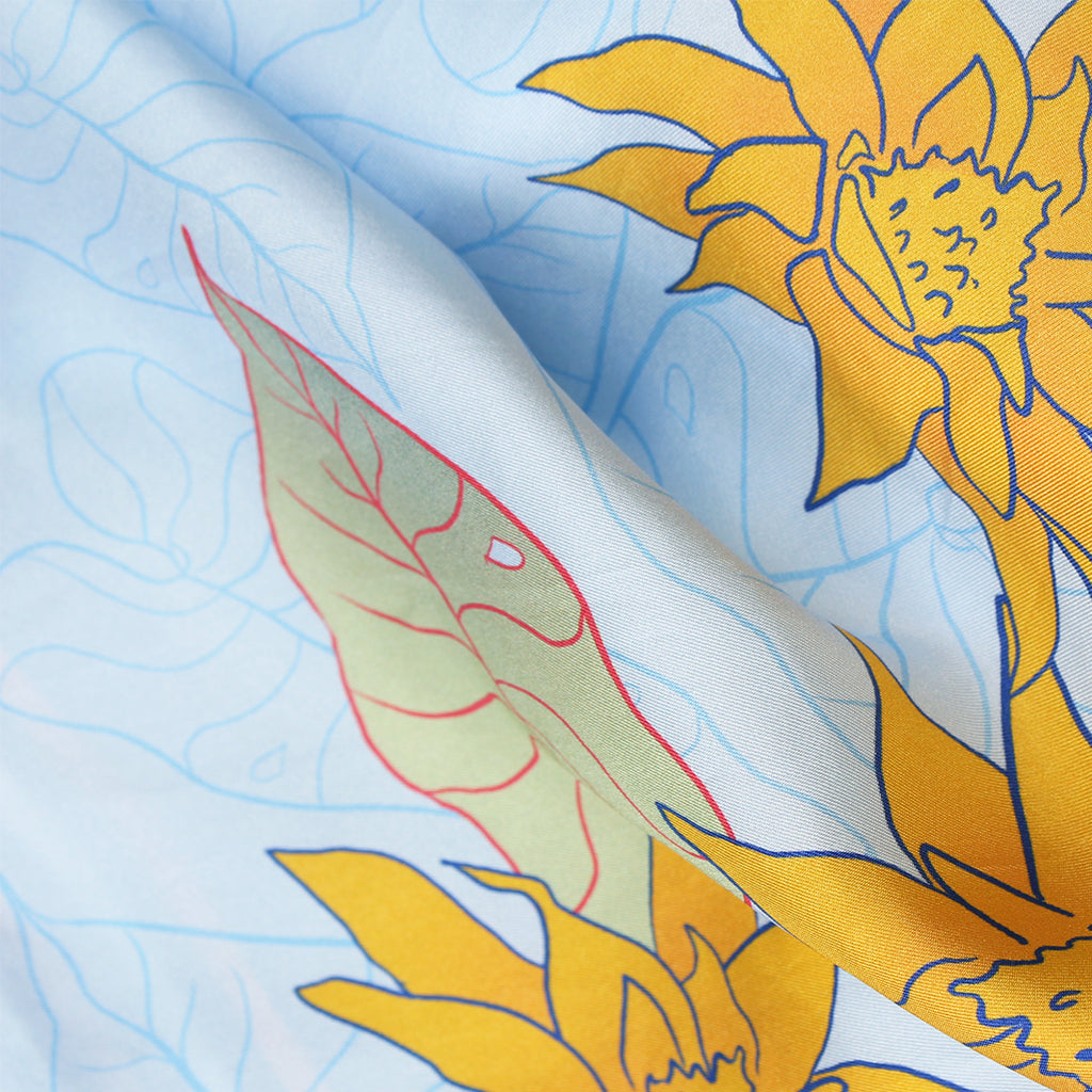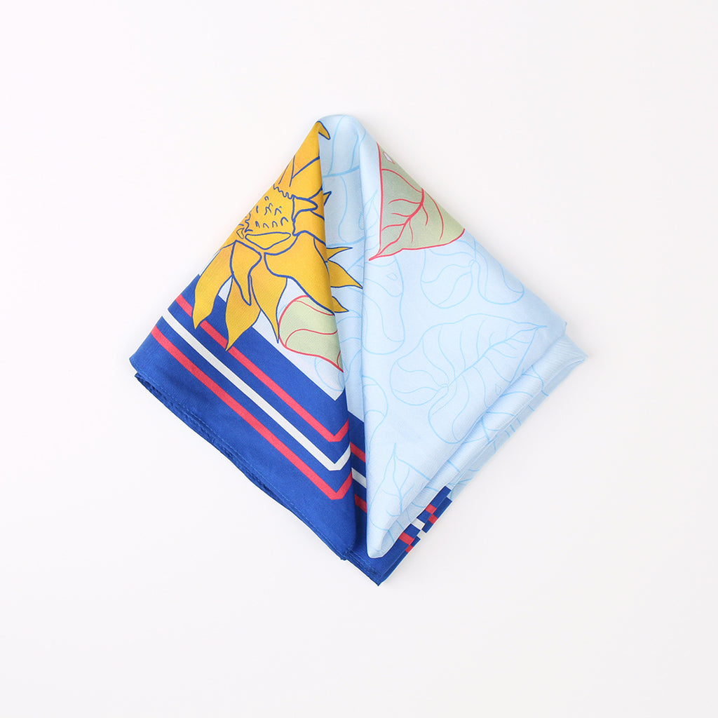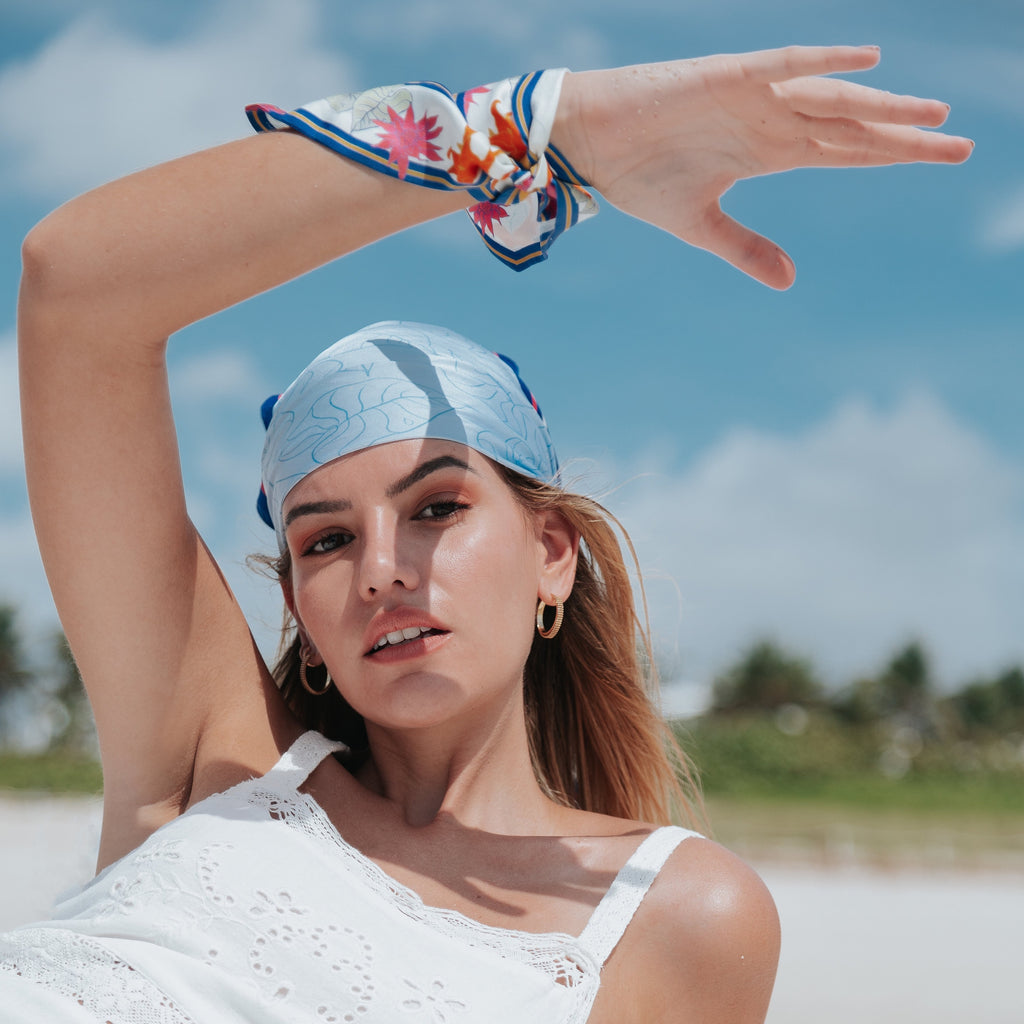 Scarf in hand-rolled silk with Aragüaney Azul Design. 100% Silk, Hand Illustrated by Alesia Nava.