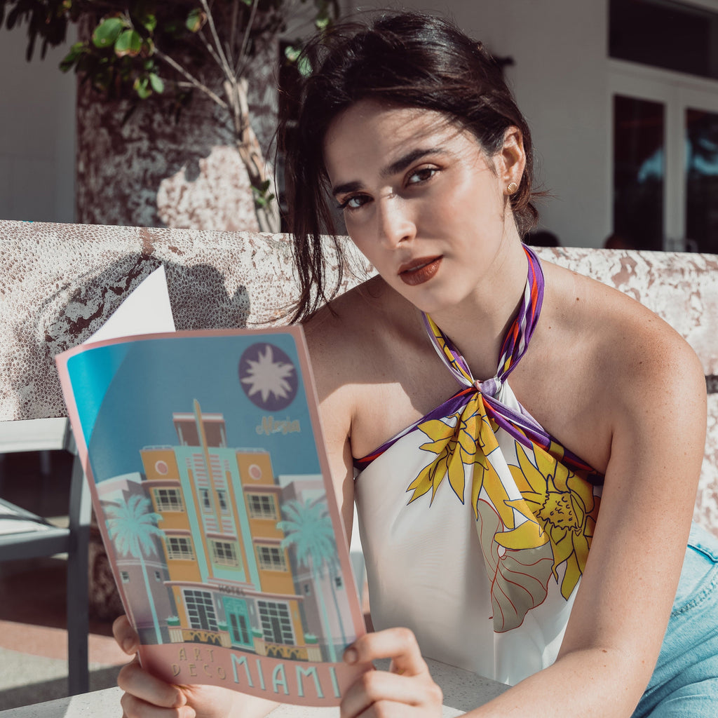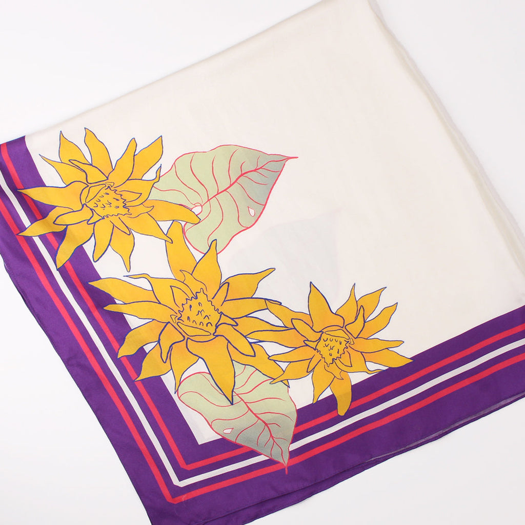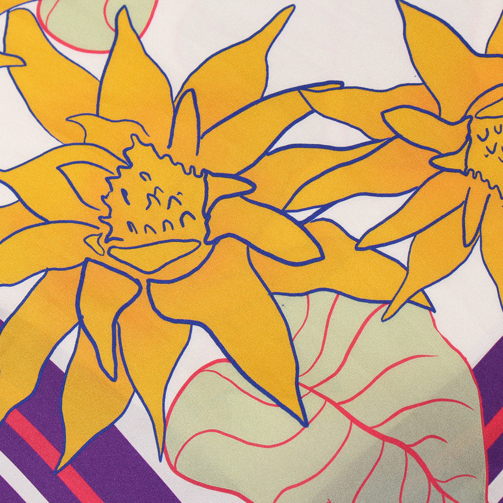 Scarf in hand-rolled silk with Aragüaney Rosa Design. 100% Silk, Hand Illustrated by Alesia Nava.