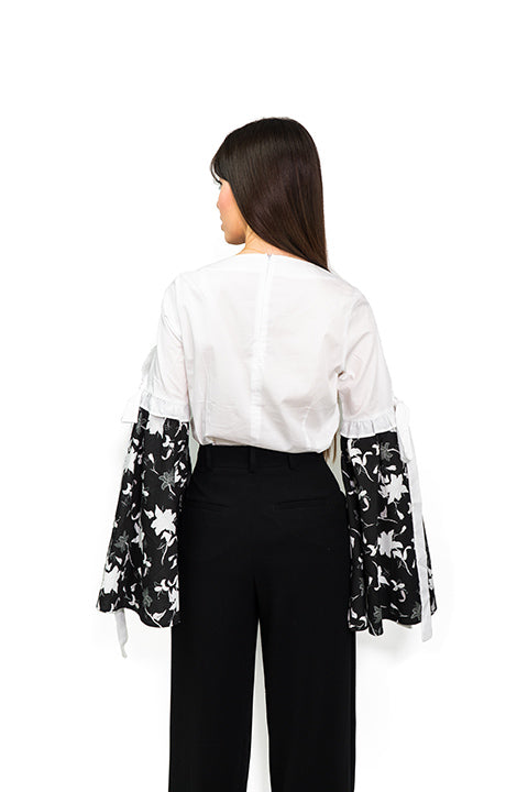 This is a 100% Cotton bell-sleeve Shirt. It has an extravagant bell sleeve original style mixing our season prints. This shirt is elegant and classic with a spin of modernity.