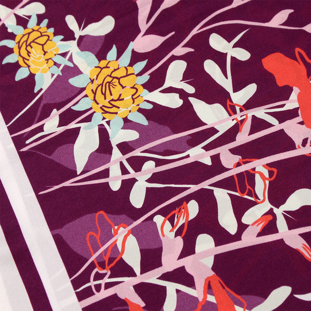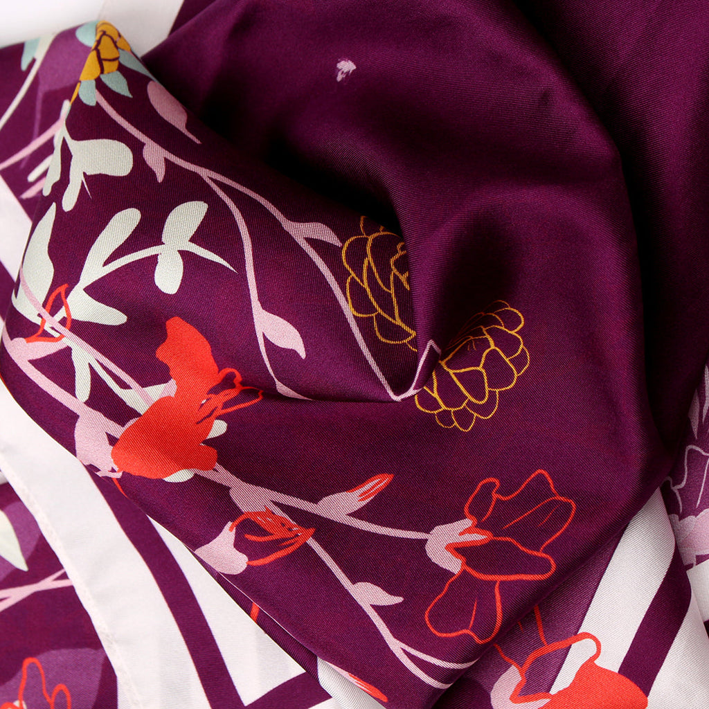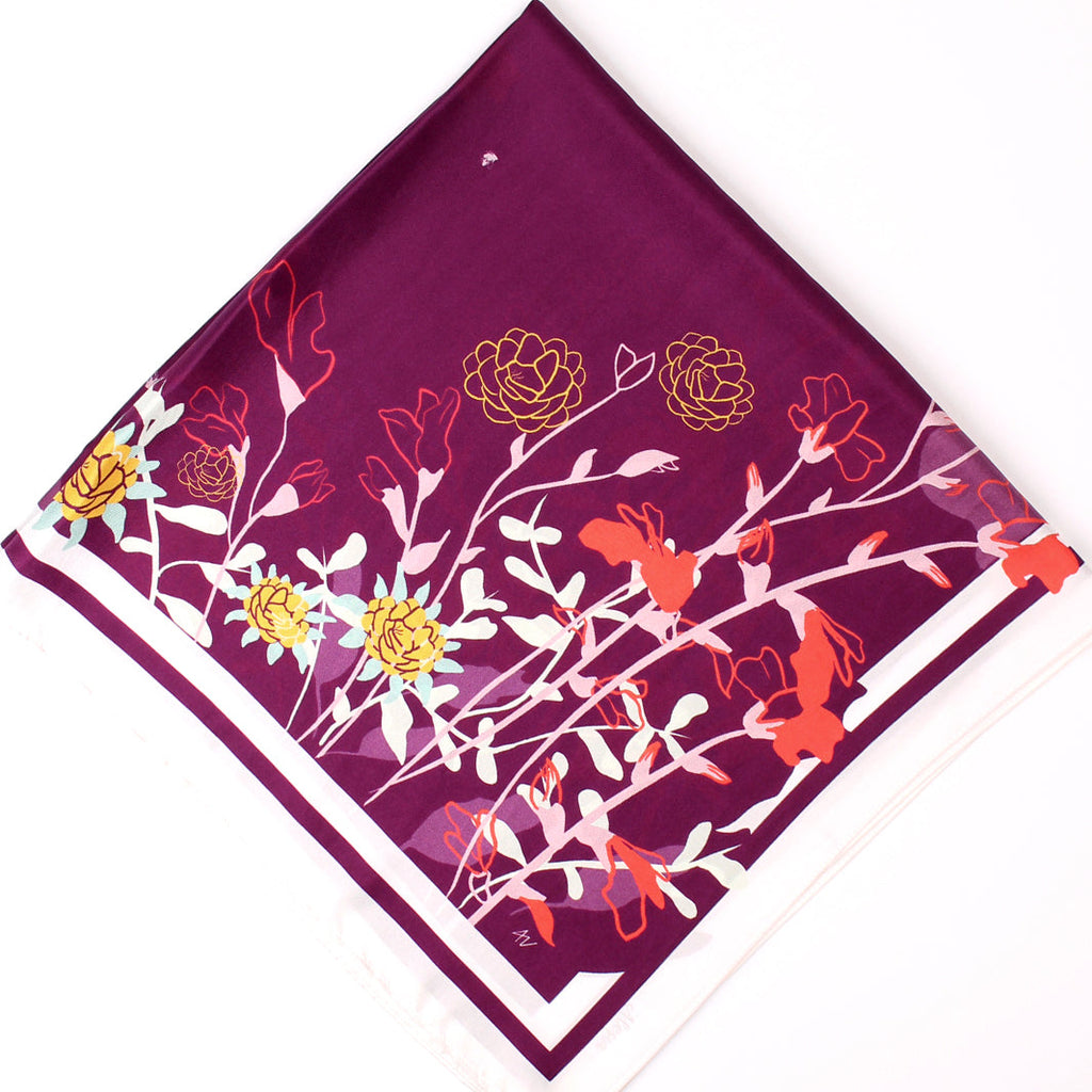Scarf in hand-rolled silk with Valencia Purple Design. 100% Silk, Hand Illustrated by Alesia Nava.