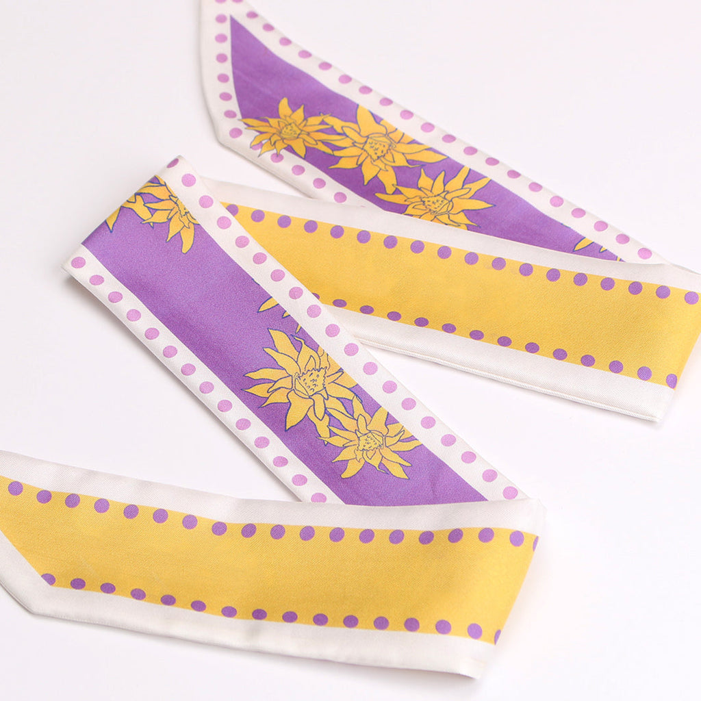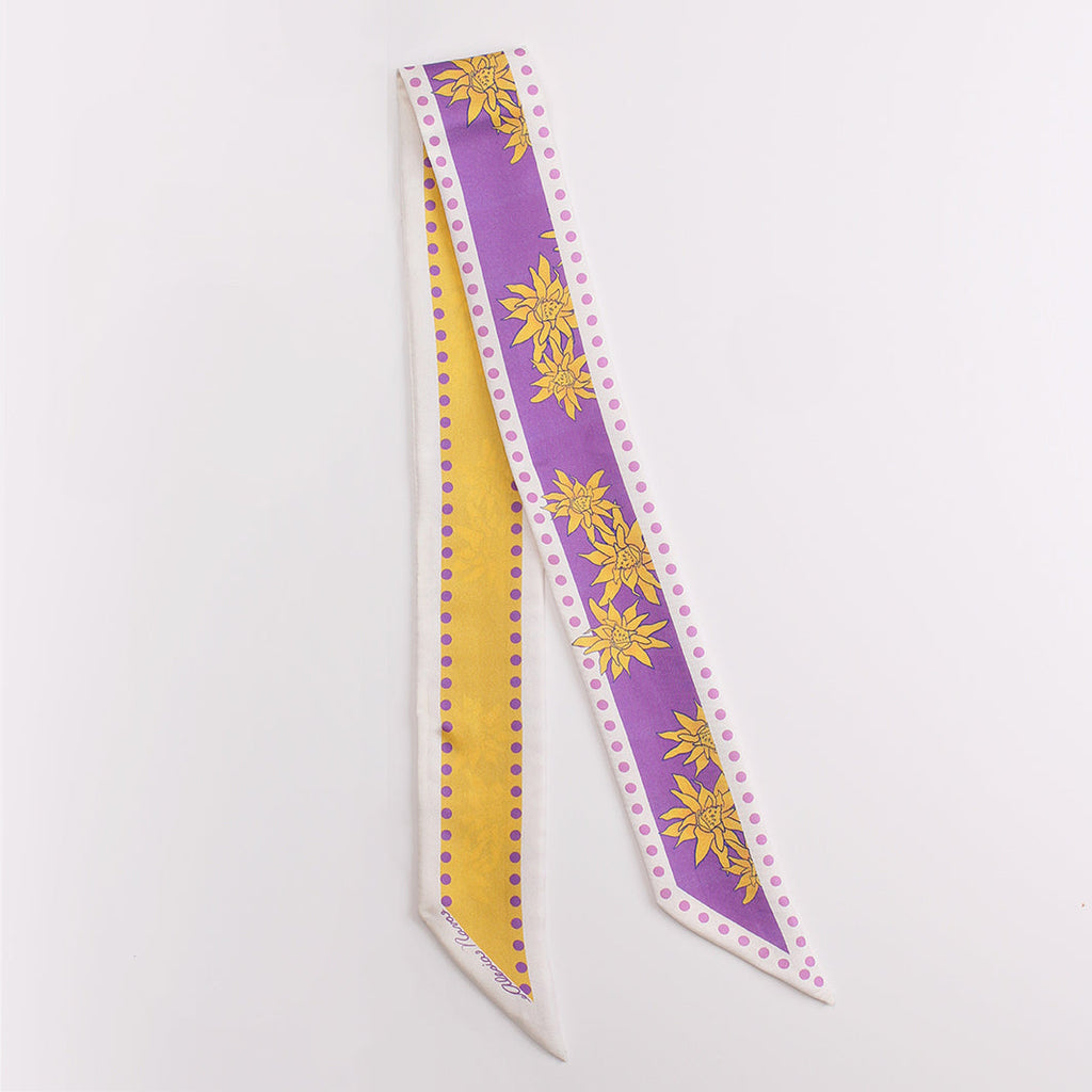 Twilly in hand-rolled silk with Aragüaney Design. 100% Silk, Hand Illustrated by Alesia Nava.